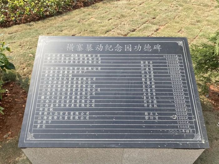 我公司为“横寨暴动纪念园”建设捐款5万元 2022年4月,以横寨暴动事件为主题的“横寨暴动纪念园”在横寨长塘村落成,赣州创泰环保科技有限公司向纪念园捐赠人民币伍万元整,表达对先烈的追思之情。