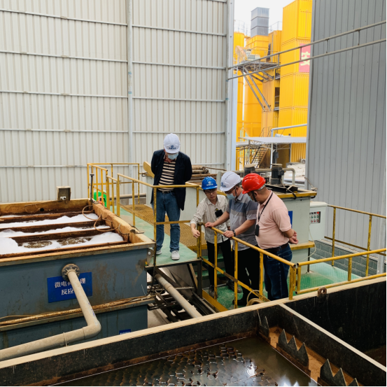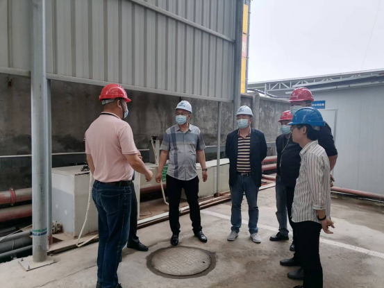 总经理廖源瑾向绿邦环境集团董事长陈磊一行现场介绍废水处理流程