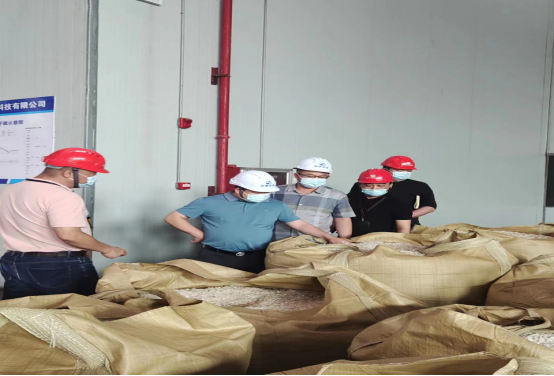 总经理廖源瑾陪同绿邦环境集团董事长陈磊一行在车间参观